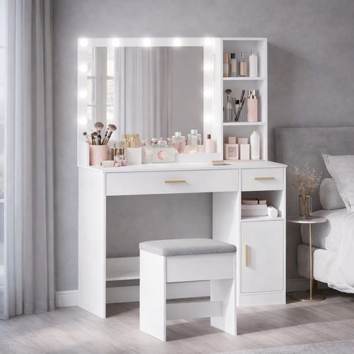 Belleya propose une sélection de coiffeuses et de meubles beauté alliant design et fonctionnalité. Nos produits sont conçus pour répondre aux besoins du quotidien et s’adapter à différents styles d’intérieur.